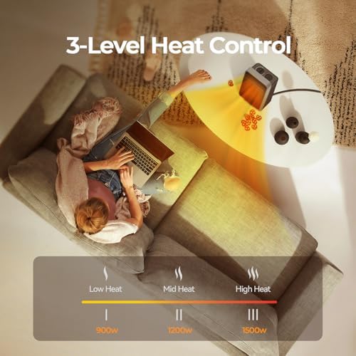 ROSEKM Space Heaters for Indoor Use, 1500W Portable Electric Heater with Thermostat, Ceramic Heater for Room Bedroom Office Under Desk with 3 Heating Levels, Safe Tip-Over Protection