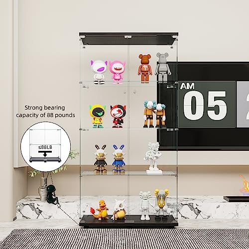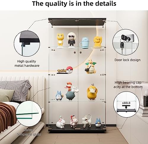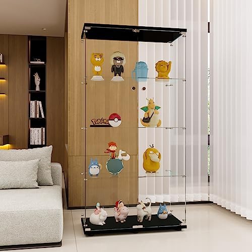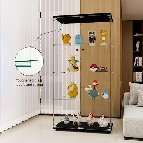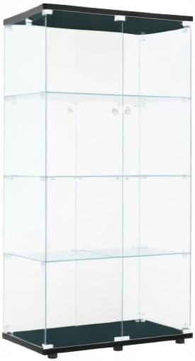 FLYMUHJIA Glass Display Cabinet Kitchen Pantry Storage Cabinet Corner Bar Cabinet with Four Level Double-Door, 64\u201Dhx32''lx 14''w Black\u2026 NDJG-B