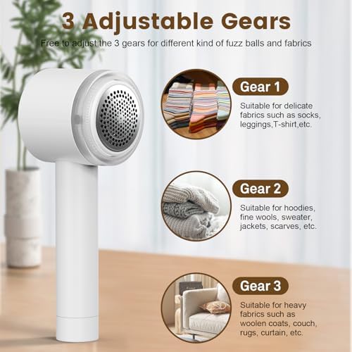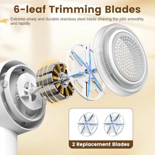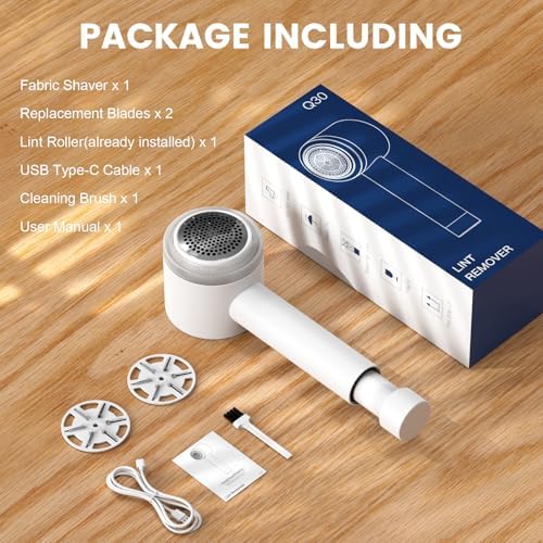 Lentorgi Fabric Shaver Electric Fuzz Remover, 2 in 1 Rechargeable Sweater Shaver with Lint Roller, Magnetic Cap, Digital Display, 2 Extra Blades, Defuzzer for Clothing Furniture Couch - White