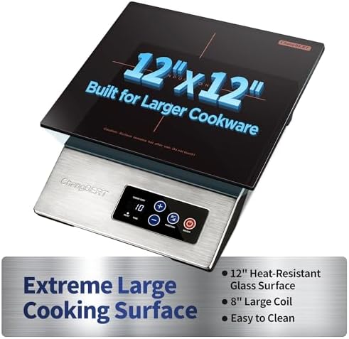 ChangBERT 1800W Commercial Grade Induction Cooktop, NSF Certified Portable Large 8" Heating Coil, 12" Heat Resistant Cooking Surface Premium Stainless Steel Pro Chef Professional Burner Hot Pl