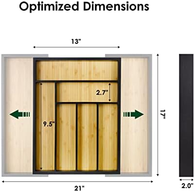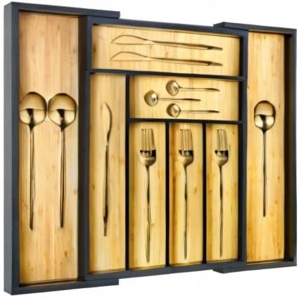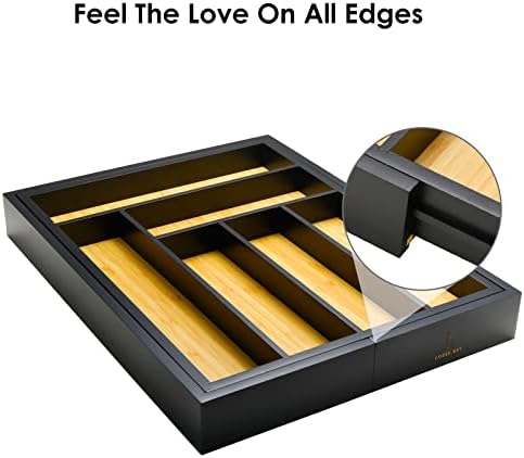 Cozee Bay Bamboo drawer organizer, utensil holder, silverware organizer, and adjustable cutlery tray with drawer dividers, for kitchen, office desk, and bathroom storage (Black)