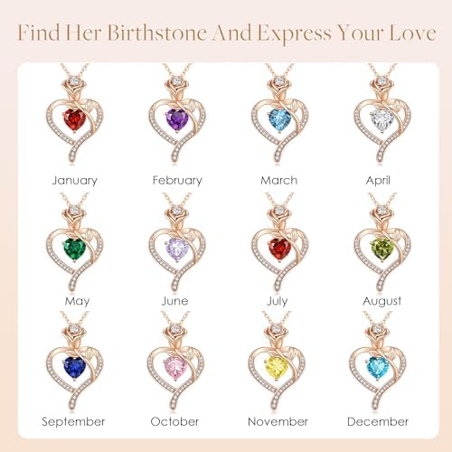 LOUISA SECRET Rose Flower Heart Birthstone Necklaces for Women, 925 Sterling Silver Fine Jewelry, Pendant Heart Necklaces Birthday Anniversary Christmas Gift for Women Wife Mom Girlfriend Lady