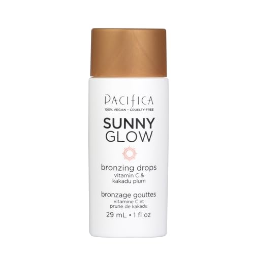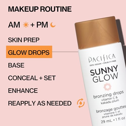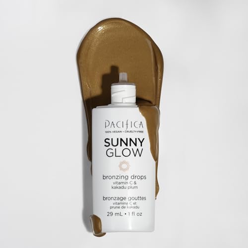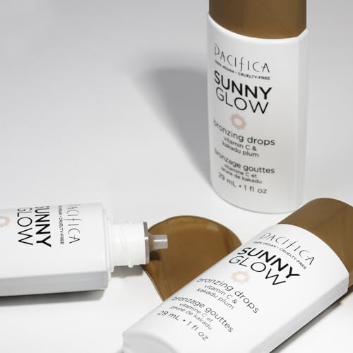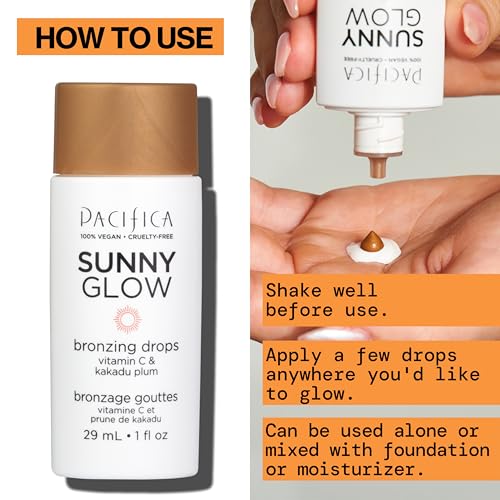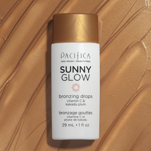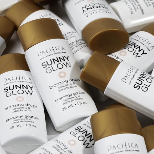 Pacifica Sunny Glow Liquid Face Bronzer Drops - Face Makeup Bronzing For Face & Cheeks for Instant Sun-Kissed Glow - Vitamin C & Glycolic Acid Infused Liquid Bronzer Illuminating Highlighting