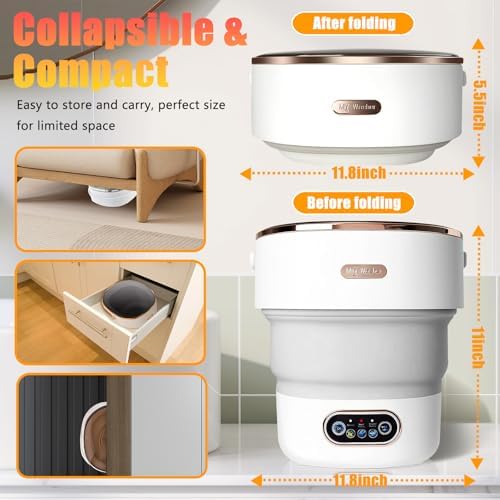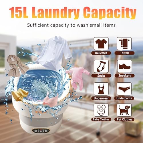 Portable Washing Machine,15L Collapsible Mini Washer with 3 Cleaning Modes Drain Basket Small Foldable Laundry Machine for Travel Camping Dorms RVs Apartments Baby Clothes Underwear Socks Delicates
