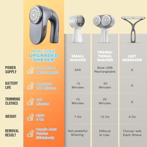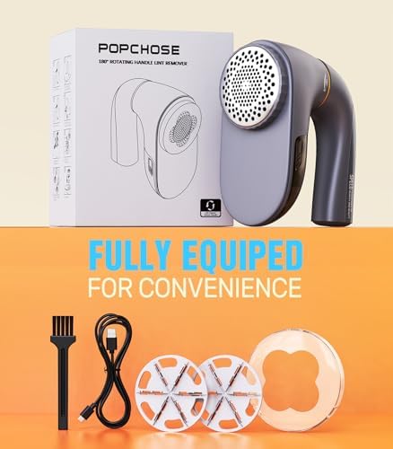 POPCHOSE Fabric Shaver, Lint Remover for Clothes, Lint Shaver with 6-Leaf Blades, 2 Speed Sweater Shavers to Remove Pilling for Clothing, Couch, Furniture, Fuzz, USB Rechargeble, Gray\u2026