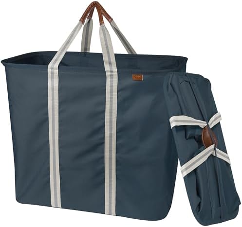 CleverMade Collapsible Laundry Basket Hamper - Navy Noir Cream 2-Pack 64L - Space Saving Storage Organizer with Handles Foldable Home Organization