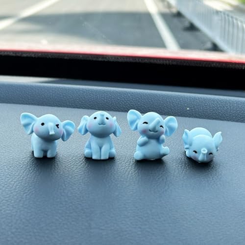 YOYLMAL 4 Pcs Mini Resin Elephants Cute Car Accessories, Funny Car Rear View Mirror & Dashboard Decorations, Adorable Car Interior Ornaments for Men Women