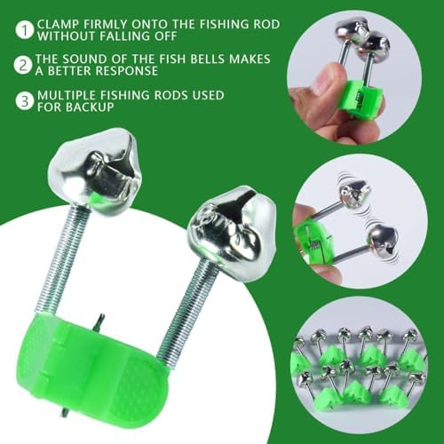 KISEER 50 Pcs Plastic Fishing Bells Clips Fishing Rod Alarm with Dual Alert Bells