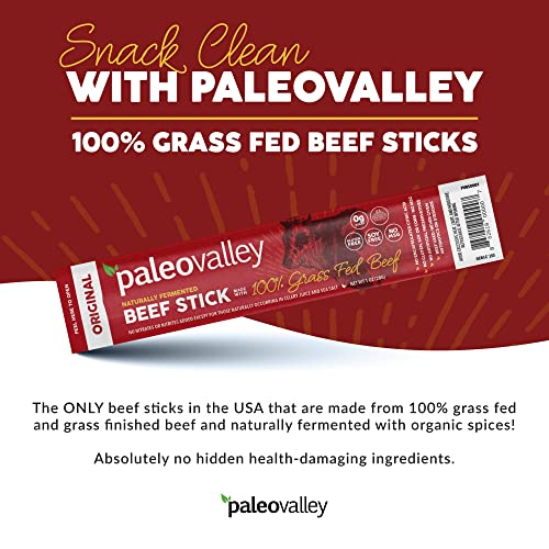 Paleovalley 100% Grass Fed Original Beef Sticks - Delicious Gluten Free Beef Snack - High Protein Keto Friendly