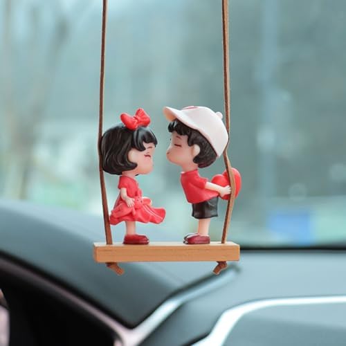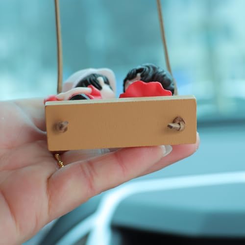 Cute Swinging Couple Car Hanging Ornament, Cartoon Boy and Girl Lovers Rear View Mirrior Hanging Accessories, Car Interior Decorations Charm Pendant for Men Women Teens Gift (Standing Couples)