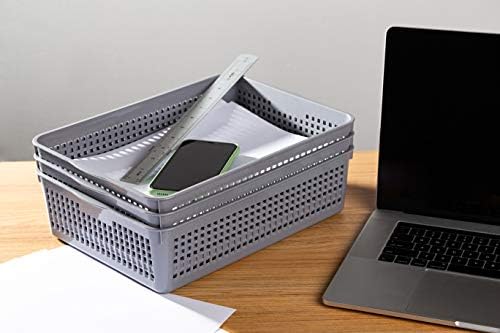 Eslite Plastic Organizing Baskets\/Storage Tray Baskets,6-Pack,Gray