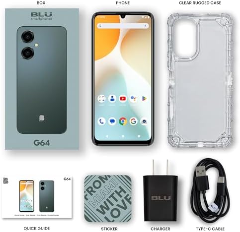 BLU G64 2024 All-Day Battery Unlocked 6.8\u201D HD+ Infinity Display 256GB Dual 50MP Camera US Warranty Green