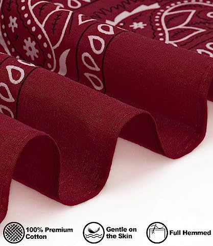 Bycc Bynn 3 Pack 100% Cotton Paisley Pattern Bandanas Face Mask Square Scarf Headwear