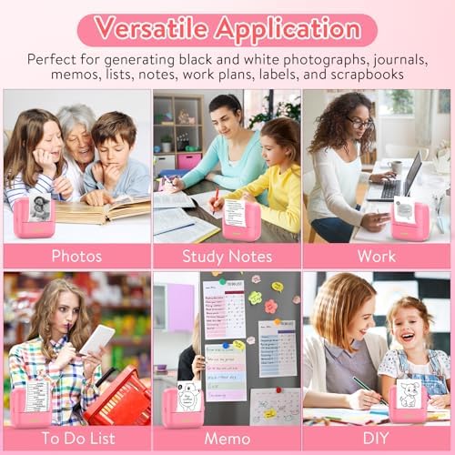 HuiJuKeJi Mini Sticker Printer Bluetooth Smart Pocket Inkless Thermal Printer with 11 Rolls Thermal Paper and Sticker for iOS&Android, Portable Receipt Printer for Photo Note Memo (Rose)