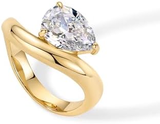 PAVOI 14K Gold Plated Premium Cubic Zirconia Square Solitaire Engagement Ring for Women - Unique Wavy Promise and Fake Wedding Ring