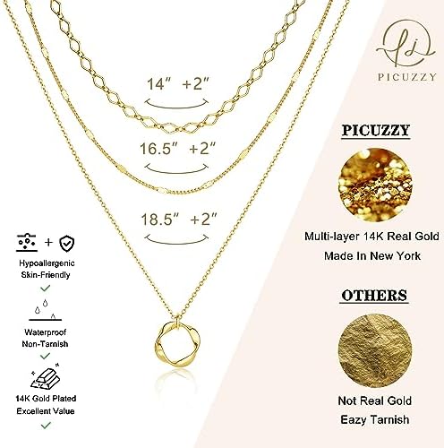 Picuzzy Layered Gold Necklaces for Women, Stackable Dainty 14K Real Gold Plated\/Silver Chain Necklace Layering Beach Cute Fashion Pendant Choker Necklaces Trendy Jewelry Set Gifts for Women Teen Girl