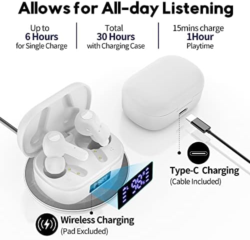 MOZOTER Bluetooth 5.3 Wireless Earbuds,Deep Bass Loud Sound Clear Call Noise Cancelling with 4 Microphones in-Ear Headphones with Wireless Charging Case Compatible for iPhone Android,Work-White