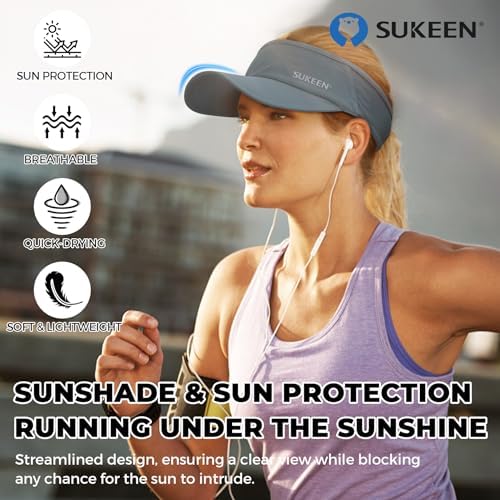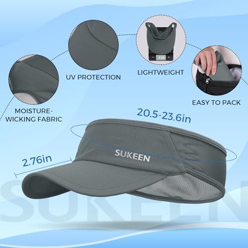 Sukeen Sports Sun Visor Men Women Lightweight Packable Cooling Stretchy Visor Hat for Running, Tennis, Golf