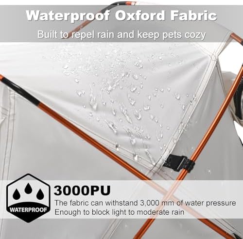 Dog Tent Cat Tent with Aluminum Poles and Camping Mat, Outdoor Waterproof Pet Tent with Zippered Mesh Door, Dog House, Cat House, Pet Playpen, Portable and Collapsible (White, Small)