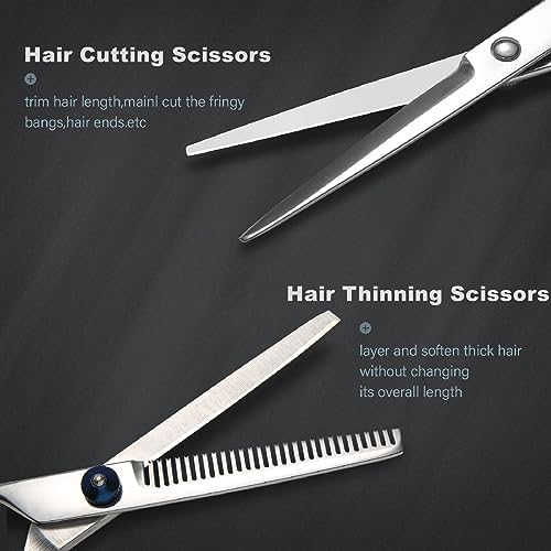Haircut Scissors Kit, 11 Pcs Professional Set - Haircut, Thinning Scissors, Neck Duster Brush, Comb, Barber Cape, Hair Clips, Hairdressing Shears for Barber and Home