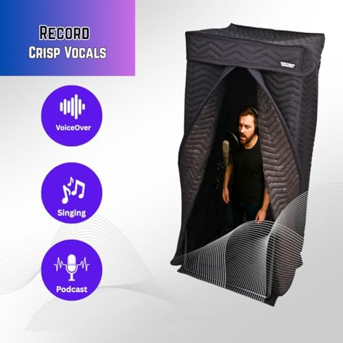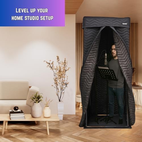 Portable Vocal Booth, Home Recording Studio, Echo-Free Sound Isolation Booth for Voice-Over, Podcast & Music - Compact Frame with Thick Acoustic Blankets, Easy Setup