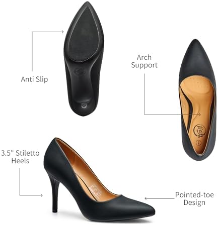 Trary Women\u2019s Slingback Pumps, Black Heels Gold Heels Nude Pink Red Heels, Pointed Toe High Heels for Women Sexy Stiletto Heels Buckle Ankle Strap Closed Toe Pumps Office Party Prom Dress Shoes