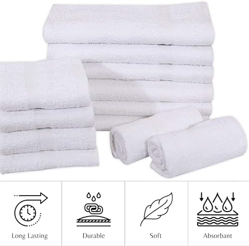 24 Pcs (2 Dozen) White 16x27 Inch Cotton Blend Economy Hand Towels Salon\/Gym\/Hotel Super use Absorbent Best for Kitchen,Janitorial,Home use Towels