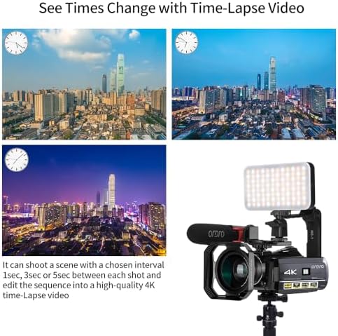 ORDRO UHD 4K Video Camera IR Night Vision Vlogging Camera for YouTube Digital Zoom Recorder with Microphone, Wide Angle Lens, LED Video Light, Handheld Stabilizer, Carrying Case,64GB Memory Card