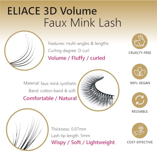 Eliace False Eyelashes Natural look Cat Eye Lashes Wispy Strips 3D Mink Lashes Fulffy,NEW 50 Pairs 5 Styles Fake Eyelashes,Faux Volume Curly Full,Thin Lash Band Soft Comfortable Lightweight Lash Pack