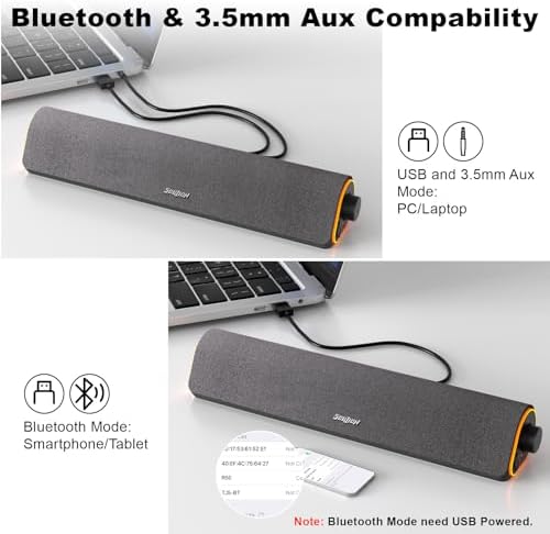 SOULION R50 Bluetooth Computer Speakers, 3.5mm PC Sound Bar for Desktop Monitor, Wired USB Powered & Colorful LED Lights with Switch Button, Surround Sound Soundbar PC Spearkers for Computer
