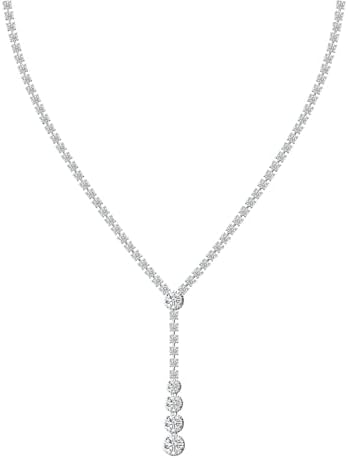Moissanite Tennis Necklace-for-Women-Wedding-Prom-Jewelry: Lariat 18K White Gold Plated 925 Sterling Silver Rhinestone Simulated Diamond Pendant Long Chain Y Necklaces - Crystal Bridal Gifts