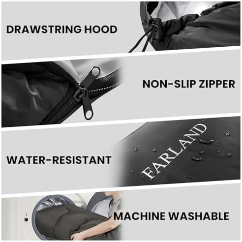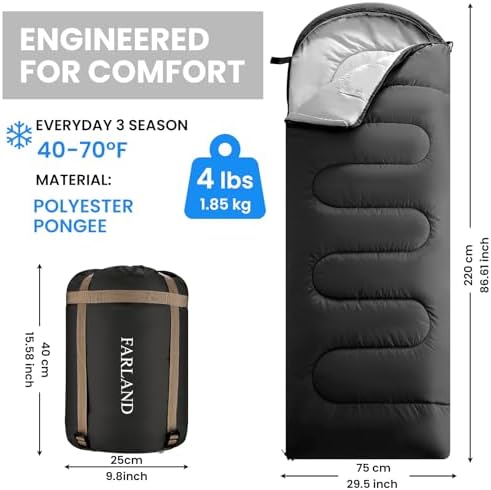 FARLAND Sleeping Bags 30℉ for Adults Teens Kids with Compression Sack Portable and Lightweight for 3-4 Season Camping, Hiking,Waterproof, Backpacking and Outdoors