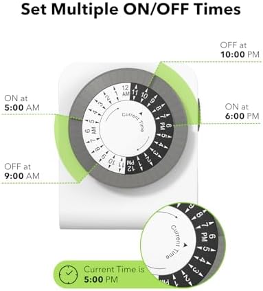 BN-LINK Outlet Timer with 2 Grounded Outlets, Mechanical Light Timer for Electrical Outlets Indoor, 24-Hour 3-Prong Timer Outlet for Lamp, Indoor Lighting and Christmas Lights, 15A\/1875W, 1 Pack