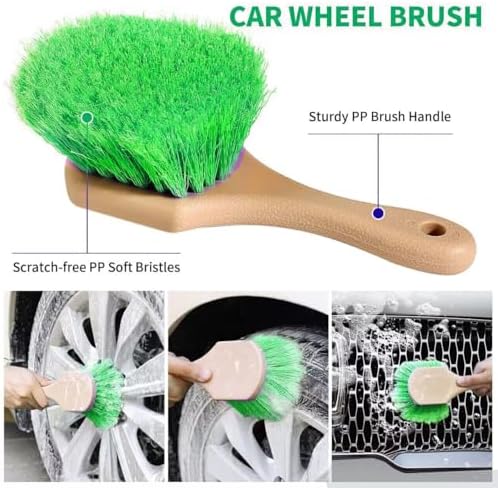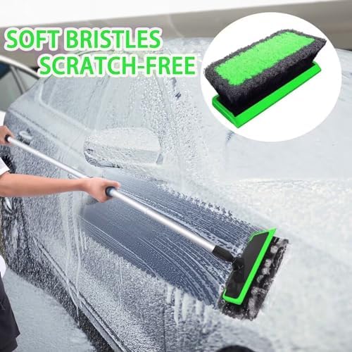 62'' Car Wash Brush with Long Handle, Soft Bristle Scratch-Free Car Wash Cleaning Detailing Brush Kit Wash Mitt Towel Windshield Squeegee Wheel Tire Brush for Car SUV Truck RV Cleaning