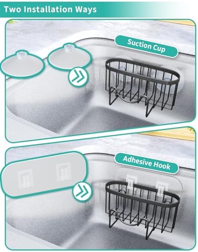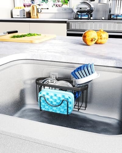 HapiRm 多功能海绵架,独特的 M 形,2 种安装方法厨房水槽收纳盒,防锈不锈钢海绵架,适用于刷子、水槽塞和刮刀-黑色