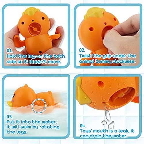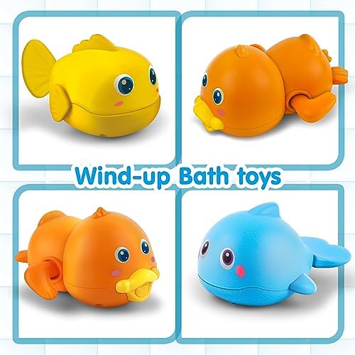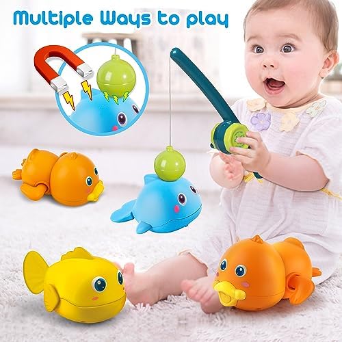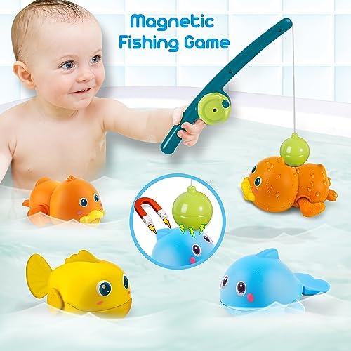 Dwi Dowellin Bath Toys for Toddlers, Magnetic Fishing Games Kids Bathtub Toys, Mold Free Wind-up Toys Swimming Fish Duck Whale Floating Water Toys for Kids Baby Infant