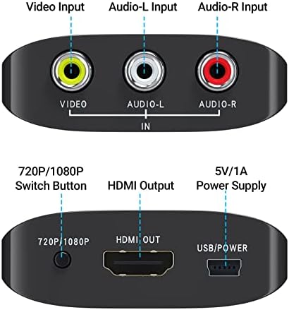 GINGIN AV to HDMI Converter, AV to HDMI Adapter Support 720p\/1080p for PS1\/PS2\/PS3\/Xbox 360\/WII\/N64\/SNES\/STB\/VHS\/VCR\/Blue-Ray DVD Players