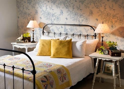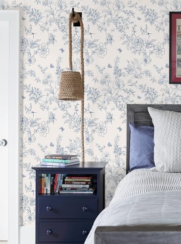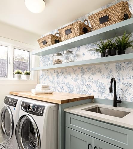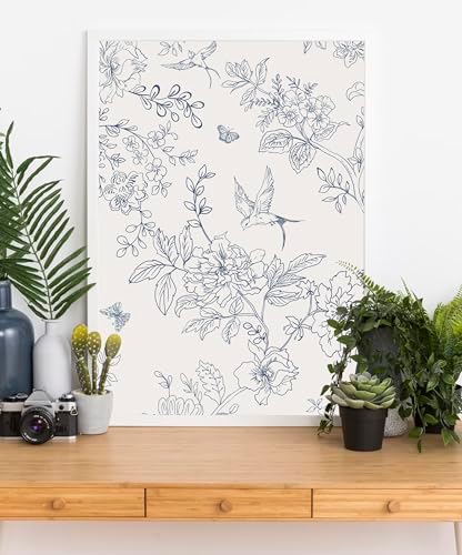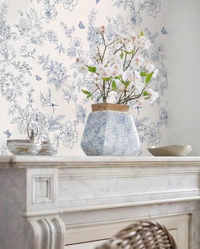 Froluya Cream White and Blue Floral Wallpaper Peel and Stick Wallpaper 17.7"x118.1" Vintage Floral Peel and Stick Wall Paper Removable Boho Self Adhesive Contact Paper for Bedroom Bathroom Vin