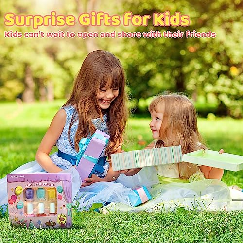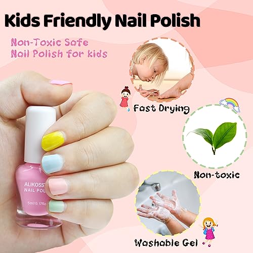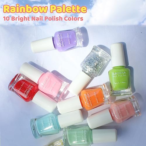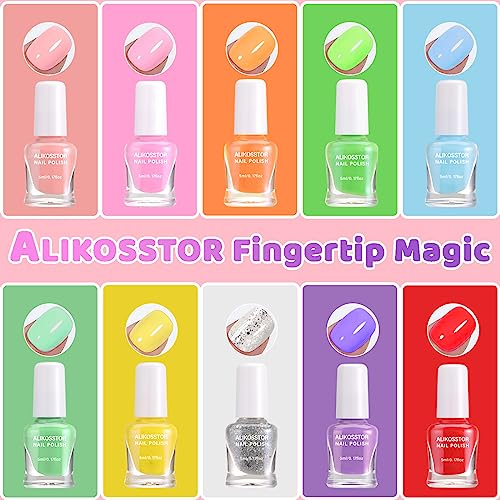 ALIKOSSTOR Kids Nail Polish Set for Girls - 10 Rainbow Colors Non-Toxic Quick Dry Peel Off Water Based Nail Polish Toys Kit for Toddler Teen Party