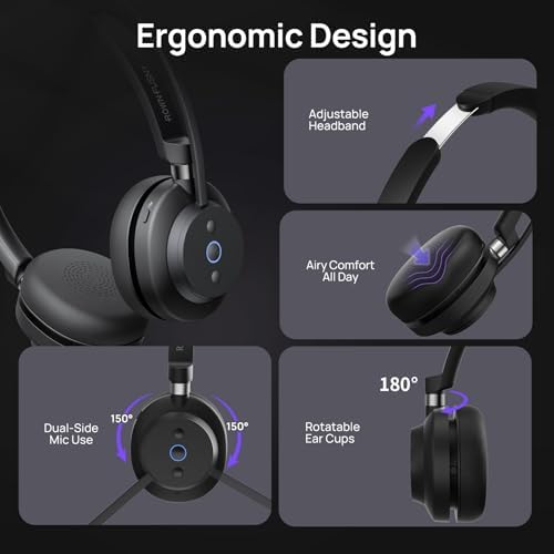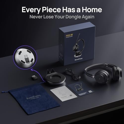 Rownfusny Wireless Headset, Bluetooth Headphones & 2.4G USB Dongle with Noise Cancelling Mic, Mute Button - for PC, Laptop, Call Center, Home Office, Zoom, Teams Meeting
