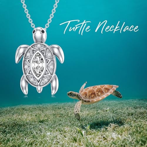 VNRIOW Moissanite Turtle Necklace 925 Sterling Silver Turtle Pendant with Lab Grown Diamond Turtle Jewelry for Women