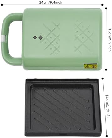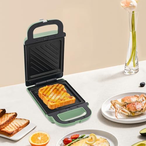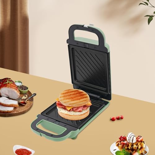 Sandwich Maker, 600W 110V Portable Breakfast Machine with Upper& Lower Heating Tube, 1-2min Preheating Time, 150-170℃\/302-338℉ (Green)