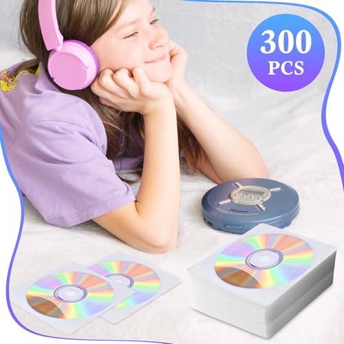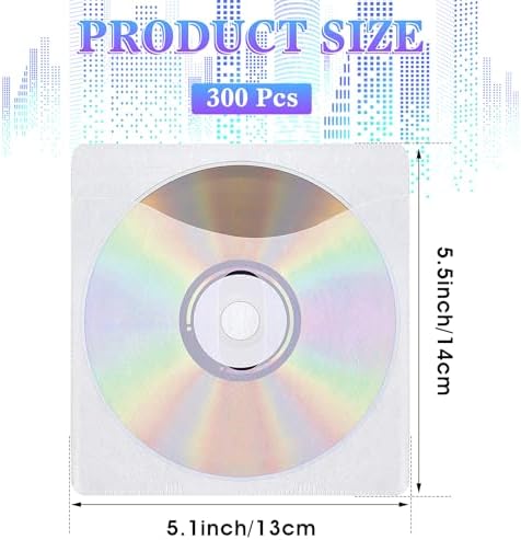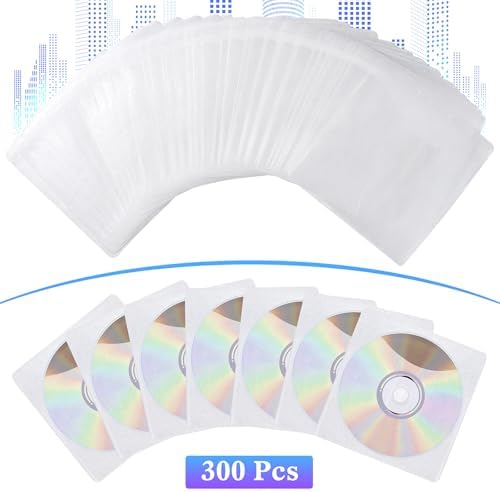 300 Pcs CD DVD Sleeves, Double-Sided Refill Plastic Sleeve for CD & DVD Storage Binders Disc Case, Disc Holder for Protection Replacement