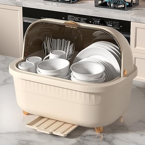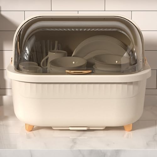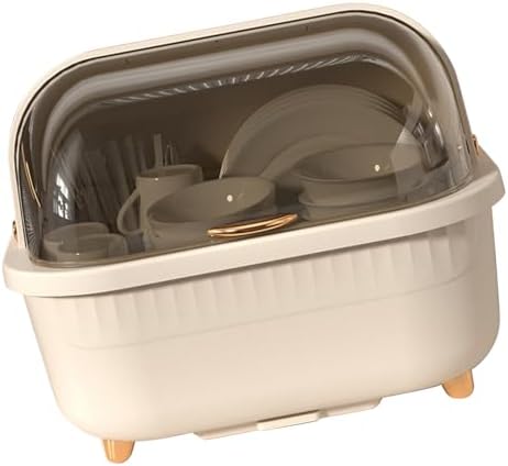 Generic Dish Drying Rack, Multifunctional Space Saving Dish Drying Box Drying Rack Dish Bowl Drying Box Dish Rack with Cover Dish Drying Rack with Cover with Lid Cover for Kitchen, Apricot M