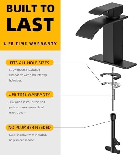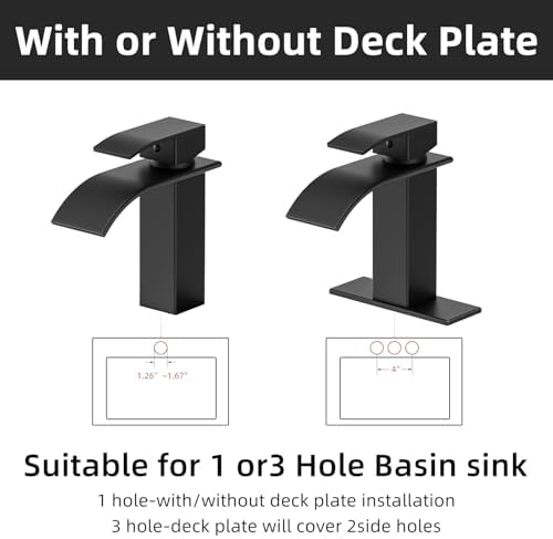 Ryuwanku Bathroom Faucet Matte Black Modern Waterfall Bathroom Sink Faucet with Single Handle Suitable for 1 or 3 Holes,Supply Deck Plate and Hose