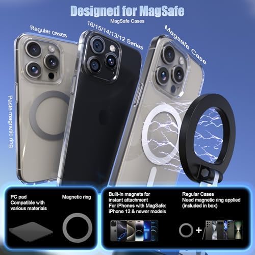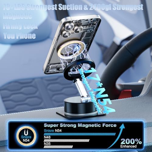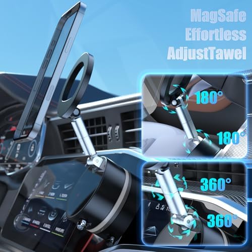 Magnetic Phone Holder for Car Super Magnet, 360°Adjustable Portable Foldable Phone Mount for Dashboard\/Gym\/Mirror\/Shower, Compatible with iPhone 16 Pro Max\/15\/14\/13\/12 & Android Magsafe Cas