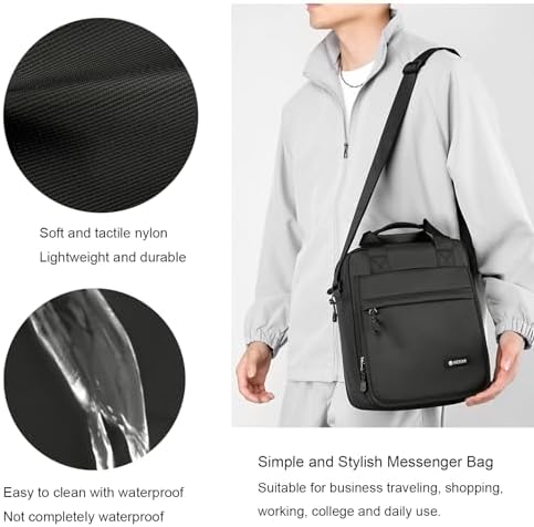 Men's Messenger Bag Shoulder Bag Nylon Business Waterproof Casual Black, Crossbody Bag Lightweight B5 for Work Travel Outdoor