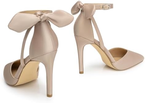 Trary Heels for Women Closed Pointed Toe Heels Women's Pumps Stiletto High Shoes with Bow Knot Comfortable Ankle Strap Office Party Wedding Dress Shoes 3.74" Heel