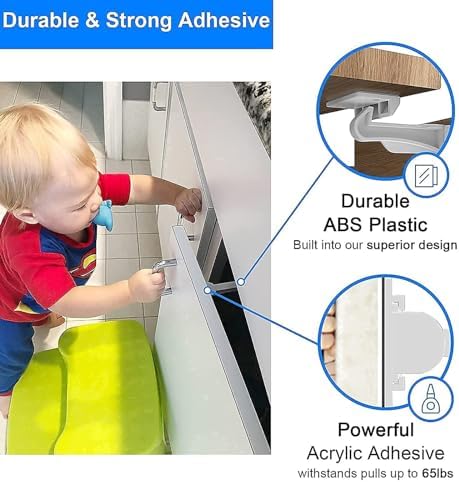 6 Pack Upgraded Invisible Baby Proofing Cabinet Latch Locks - Buumook Children Proof Cupboard Drawers Latches - Adhesive Easy Installation