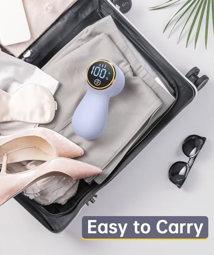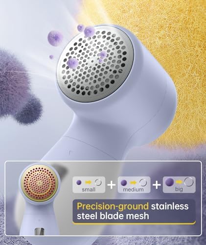 Rechargeable Fabric Shaver Lint Remover, Sweater Shaver with 3-Speed Control, LED Display Clothes Shaver, 6-Leaf Stainless Steel Blades, Suitable for Clothes, Sweater, Couch, Blanket, Wool (Purple)